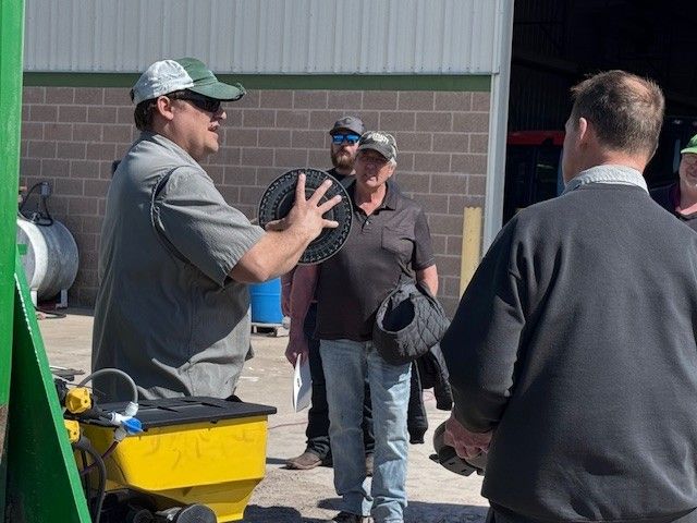 In the morning session, attendees gathered in the conference room to learn about John Deere technology updates, and in the afternoon, they got a hands-on look at planter maintenance.