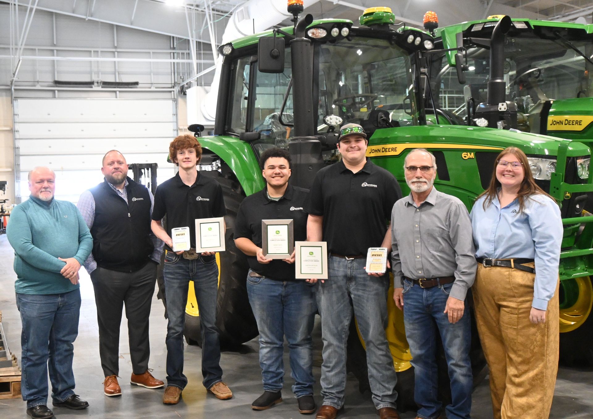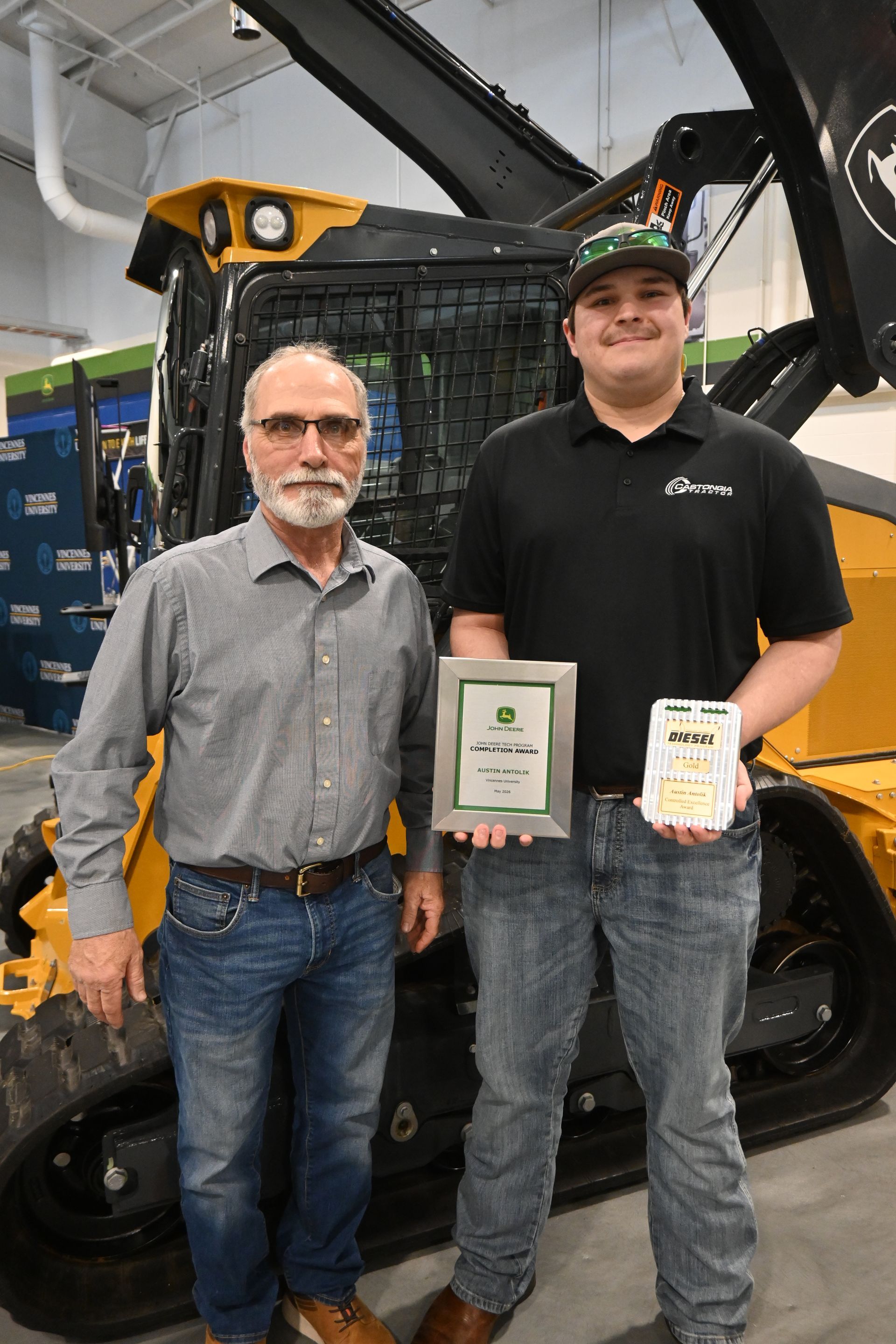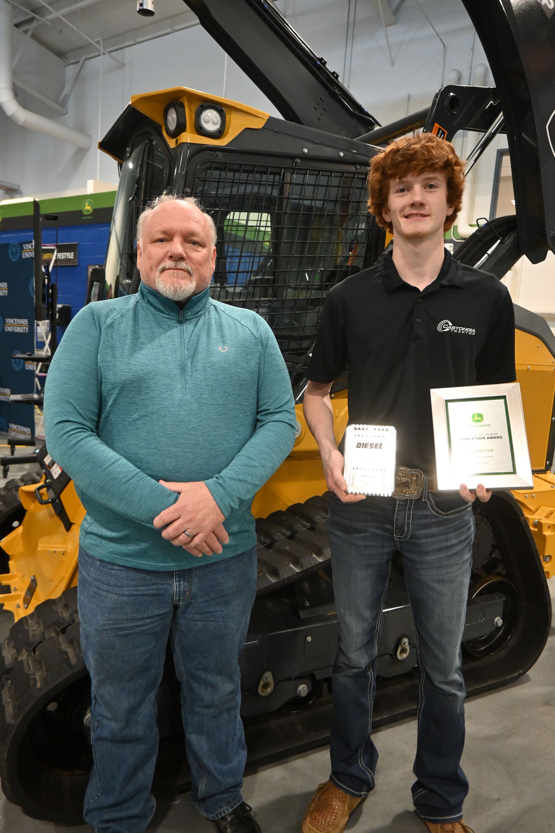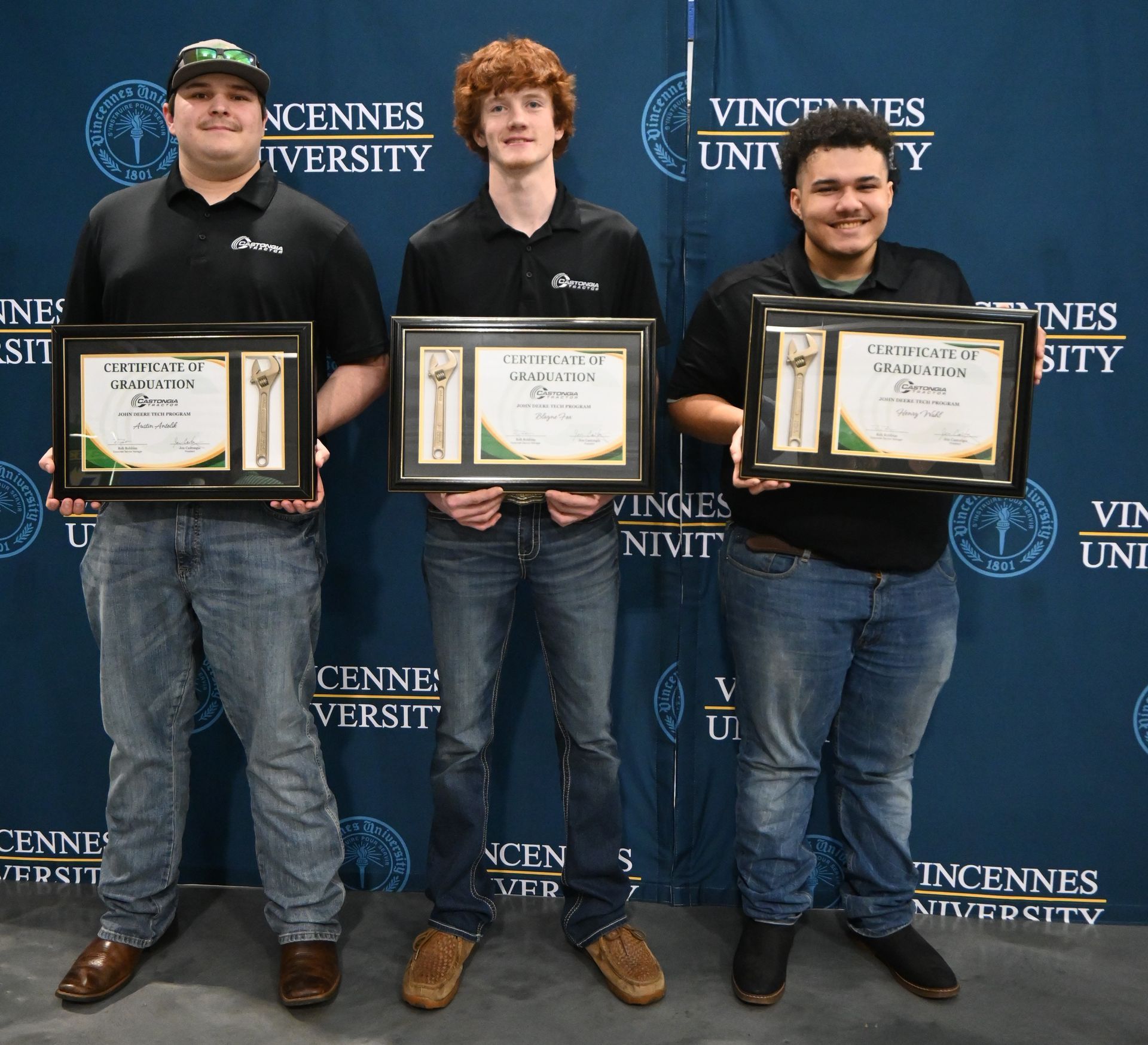 On March 6, 2026, the Castongia Tractor team celebrated three young men who completed the John Deere Tech Program at Vincennes University. During this two-year program, Austin, Blayne, and Henry earned their Associate's degrees, and also became Level 2 certified John Deere technicians. It’s a unique opportunity that allows students to have classroom experience and experience within our Service Department.