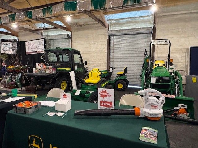 Castongia Tractor was one of the event’s sponsors and had a booth space in the Jasper County Fairgrounds Commercial Building. They showcased their portfolio of residential turf equipment, including a 1025R compact utility tractor, S240 riding lawn mower, John Deere’s electric zero-turn mower, 835 Gator XUV, and various STIHL outdoor power equipment pieces. The booth also featured promotional items, literature, and a leafblower giveaway.